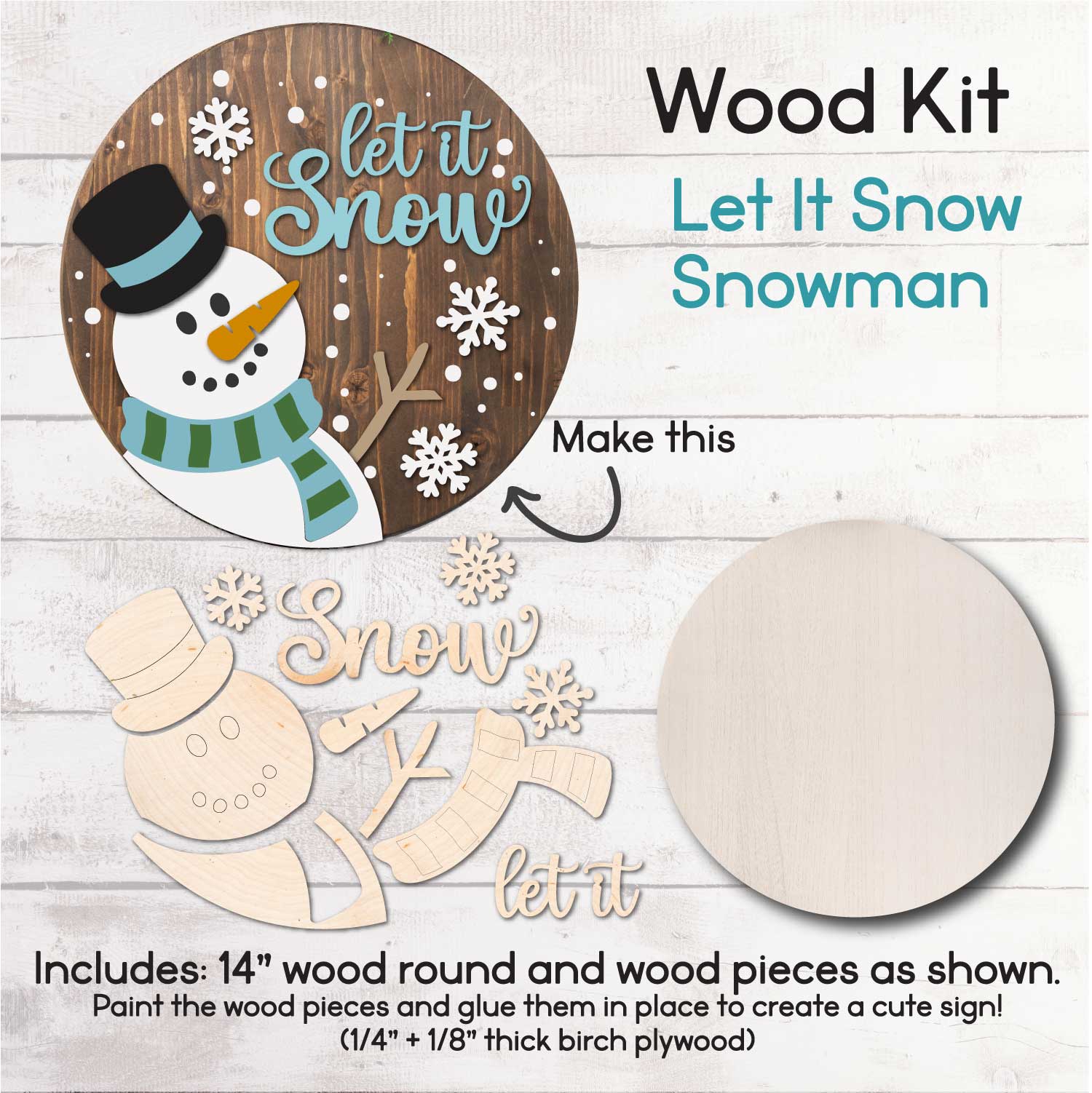 A happy snowman door hanger to welcome your guests! This kit includes wood round and all the wood pieces to make the look as shown. Just paint the wood pieces, glue them on the round; hang with a ribbon and display!