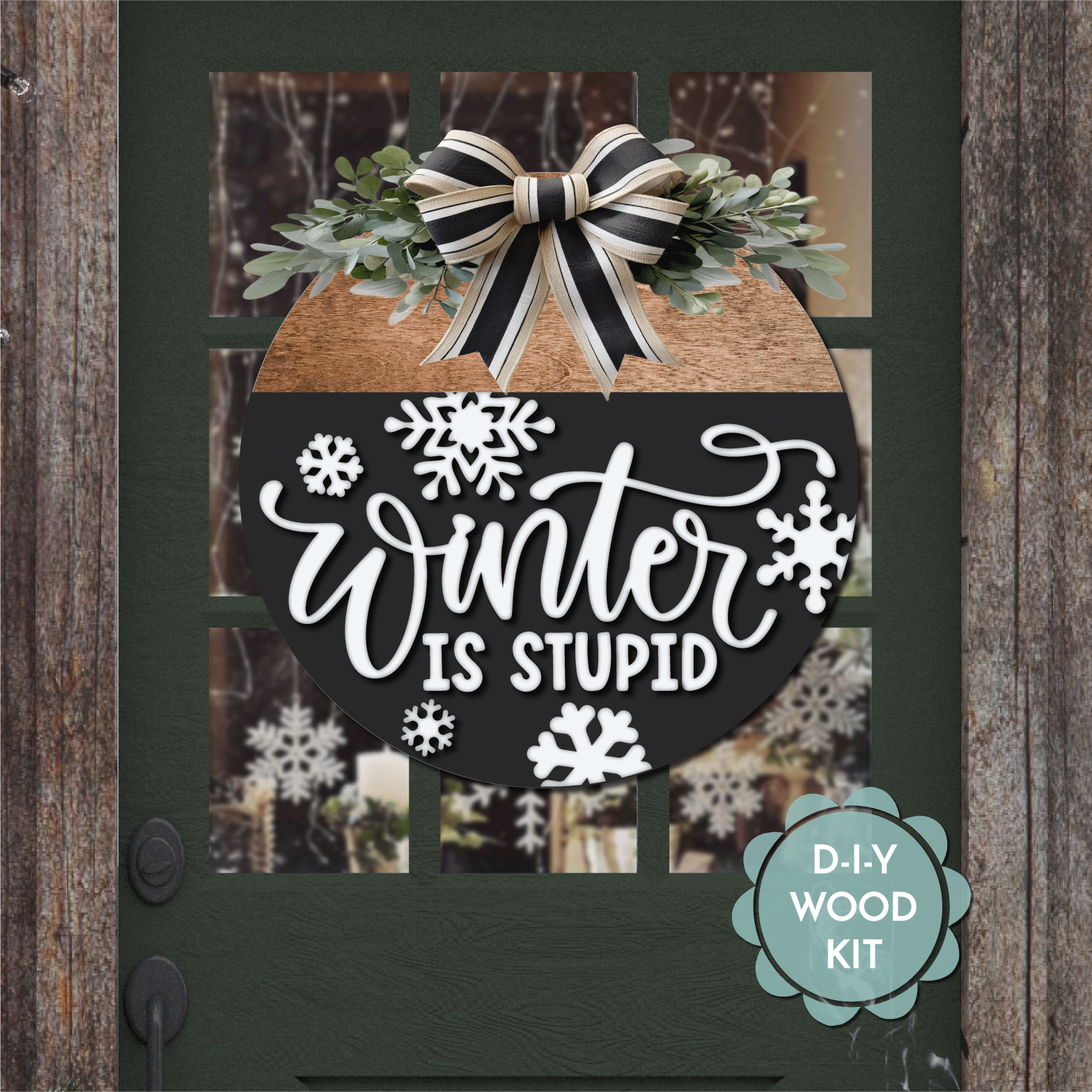 How do you feel about winter?? This lovely door hanger kit sums up how most of us feel when the snow flies! Winter is stupid! This is a do-it-yourself kit that you paint and glue together. Perfect for beginner crafters! (paint not included). Make a few as gifts or to sell!