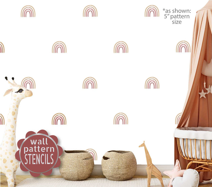 Have you considered using stencils on your walls? This cute Boho rainbow stencil can make a cute pattern on a kid's wall. Much more affordable than wallpaper! Use one or more colors for an interesting wall effect.