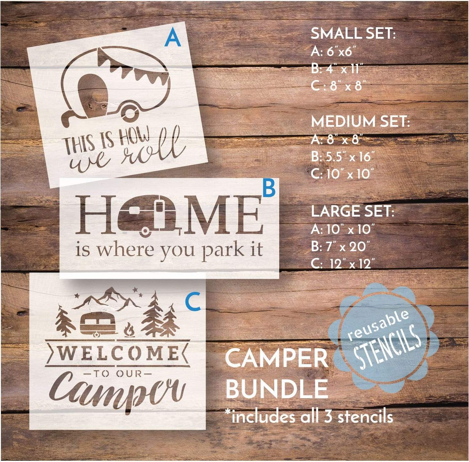 A collection of 3 camper themed stencils; perfect for the camper or campsite.