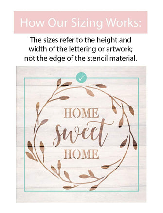 THE SIZES listed refer to the size one gnome with text above or below as shown.  Stencil bundle includes separate pieces for each holiday theme : valentine heart, four leaf clover, star, holly, santa hat,  3 word phrases, gnome body, beard and hat (9 pieces in total)
