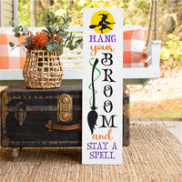 A cute stencil for halloween, complete with broomstick and witch riding near the moon! Change up the colors for a different look each time.