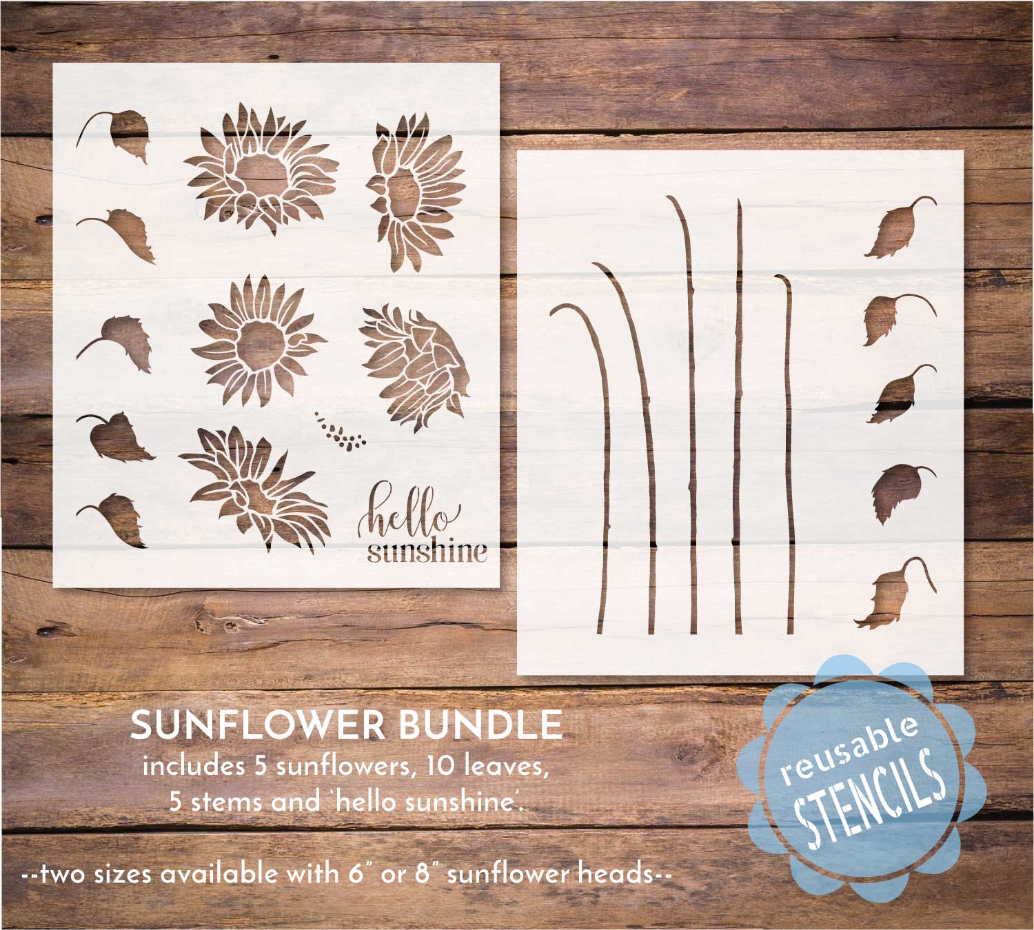 Two sizes available: 6" or 8" sunflowers