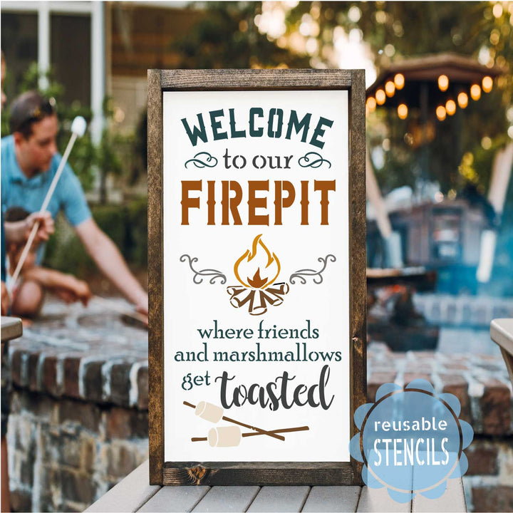 Welcome to our Firepit - Get Toasted / Reusable Stencil
